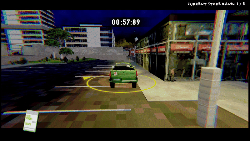 In It’s Dinner Time, player’s take the role of a driver delivering food to different locations around a sandbox map. Player’s have to race against the clock to make each delivery before their Ford Falcon explodes. Drivers are able to smash through obstacles, clean up pedestrians and make sweet jumps to find the most optimal path to their destination.